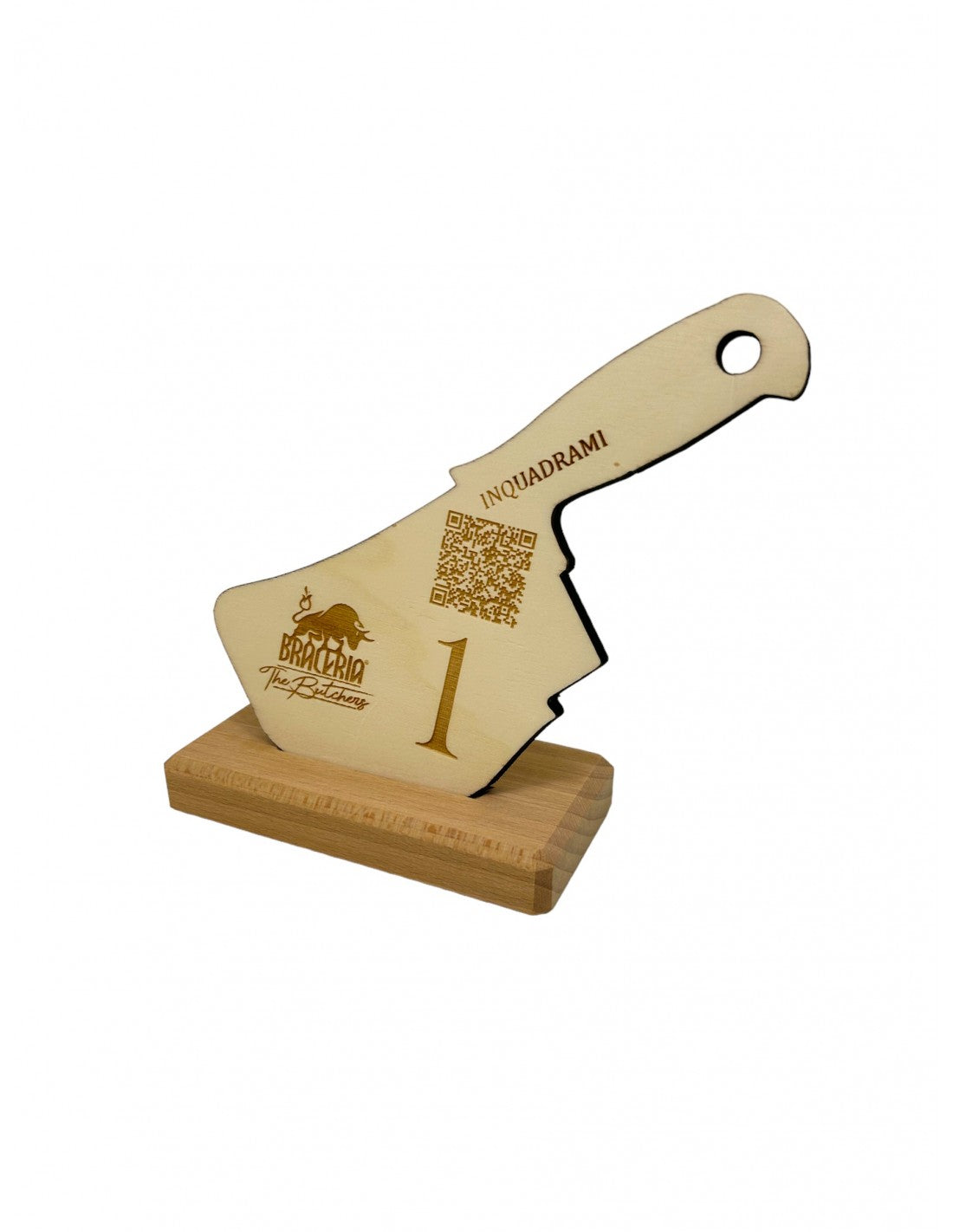 Segnaposto Mannaia in legno naturale, perfetto per ristoranti, hotel, B&B e agriturismi.